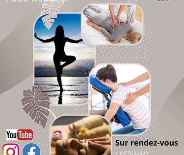 - La relaxation et relaxologie : des séances personnalisées pour apaiser le mental, réduire le stress et favoriser un état de profonde détente grâce à des techniques adaptées.
