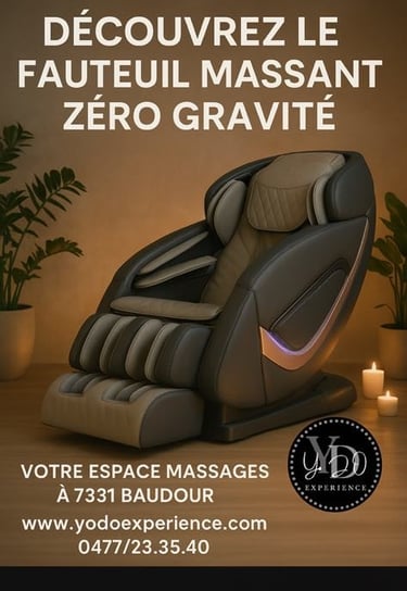l’espace massages Yo D'O expérience vous accompagne avec expertise et bienveillance afin de vous offrir un moment de détente sur mesure, adapté à vos besoins et envies. Venez vivre une parenthèse de sérénité et de revitalisation.