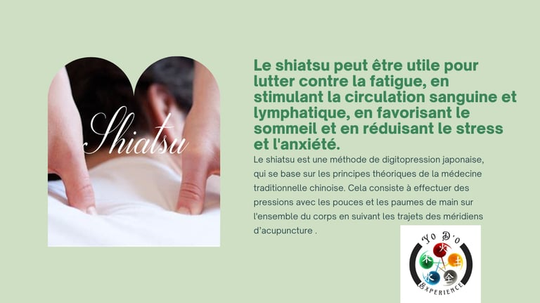 - Le massage shiatsu : technique japonaise basée sur la stimulation des points d’énergie, il vise à rééquilibrer le corps et l’esprit en libérant les tensions et en favorisant la circulation énergétique.